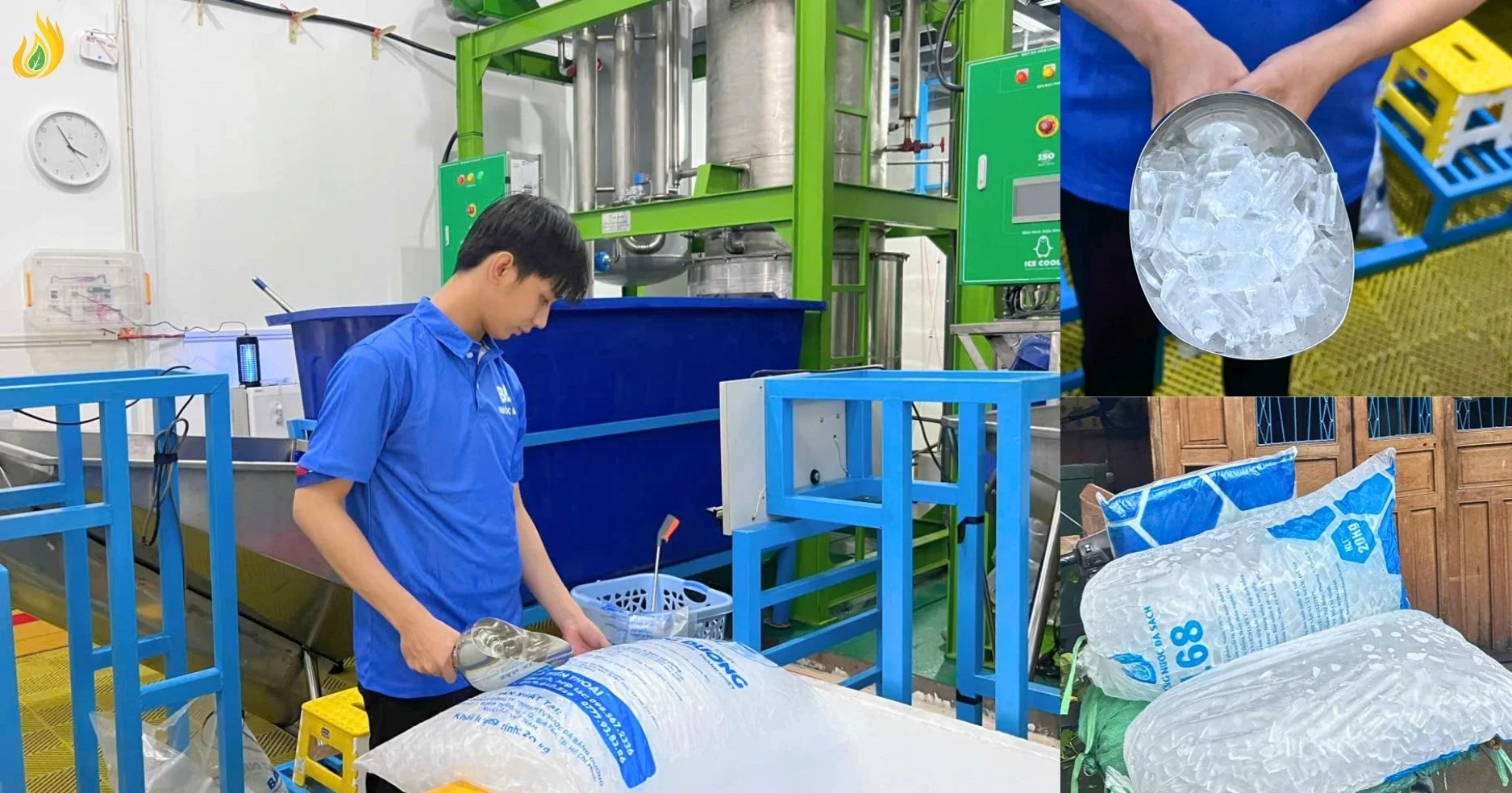 - Nguồn nước tinh khiết đã qua xử lý kỹ lưỡng, đảm bảo nước đá sạch và nước đá tinh khiết.